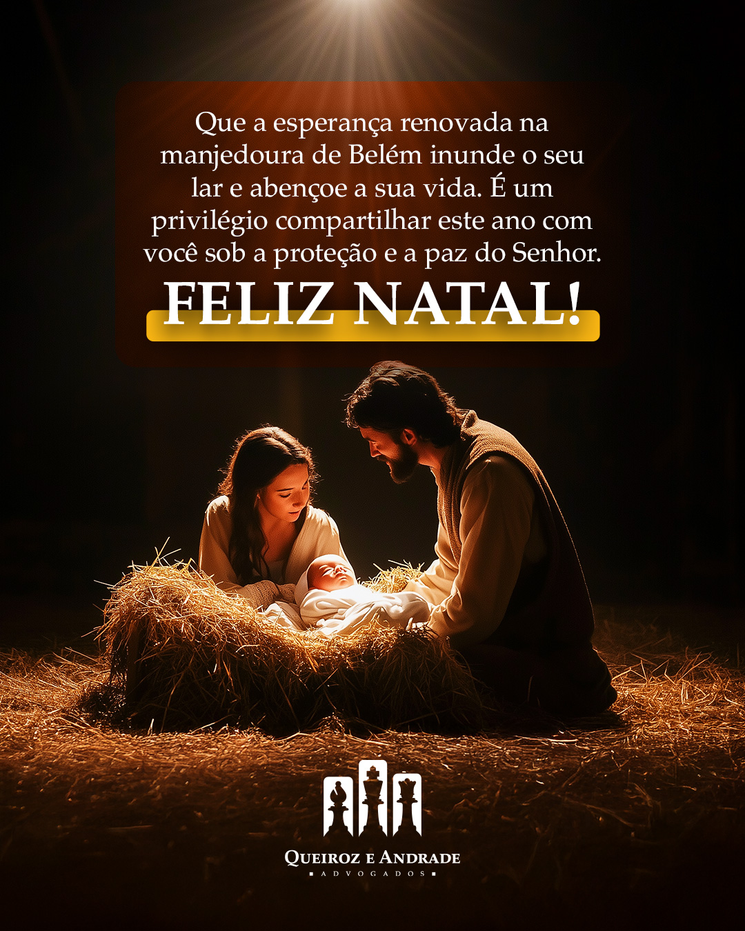 Neste Natal, celebramos o nascimento de Jesus Cristo, o verdadeiro motivo da nossa alegria e a luz que guia nossos caminhos. Que a esperança renovada na manjedoura de Belém inunde o seu lar e abençoe a sua vida. É um privilégio compartilhar este ano com você sob a proteção e a paz do Senhor. Feliz Natal!